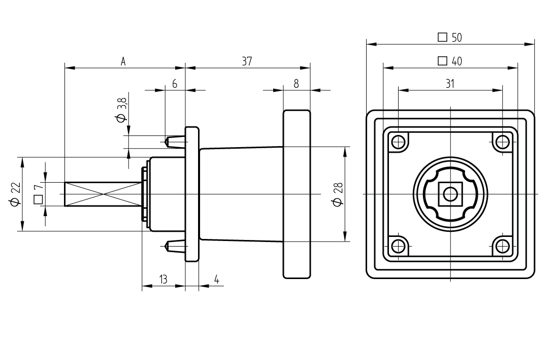 Für handelsübliche Drehstangen- und Stangenschlösser mit Vierkant 7x7mm