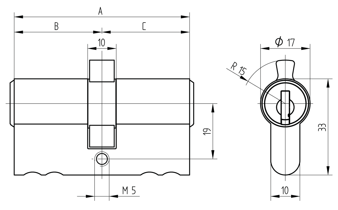 Für 17mm Einsteckschlösser und aufgesetzte Schlösser