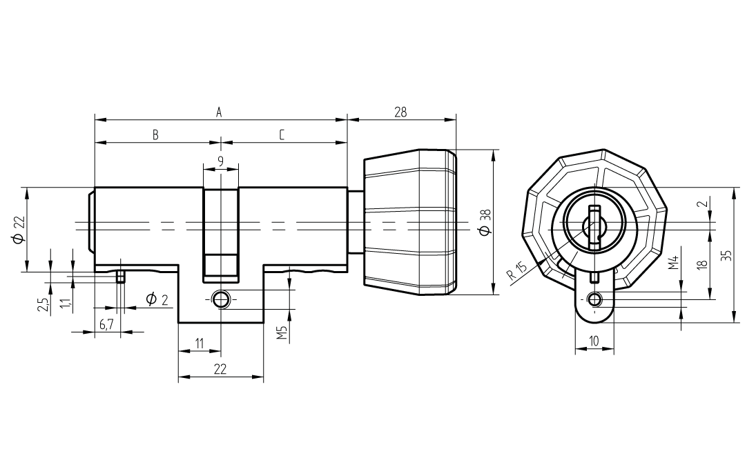 Drehknopfzylinder RZ mit Kontaktstift M1081.0.0.15.05.0.00
