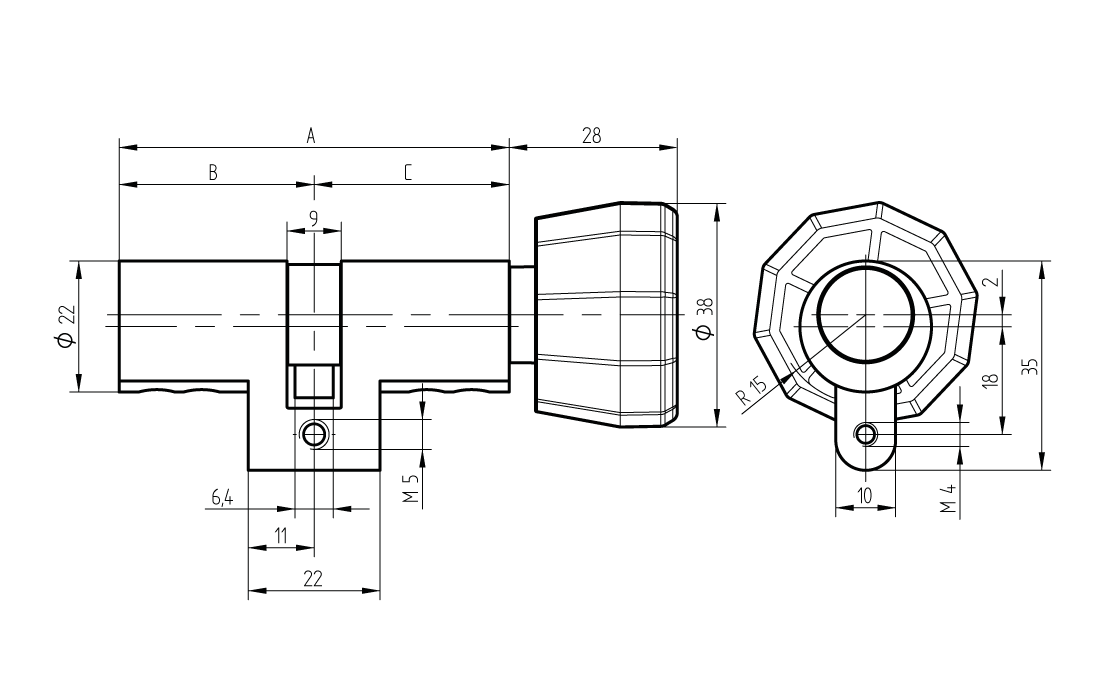 • Drehknopf: Drehknopf Ø38mm