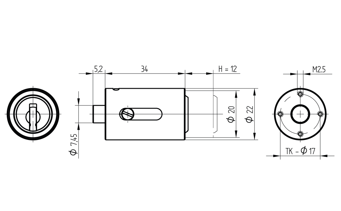 Hub H = 12mm, 2x (1x45°)