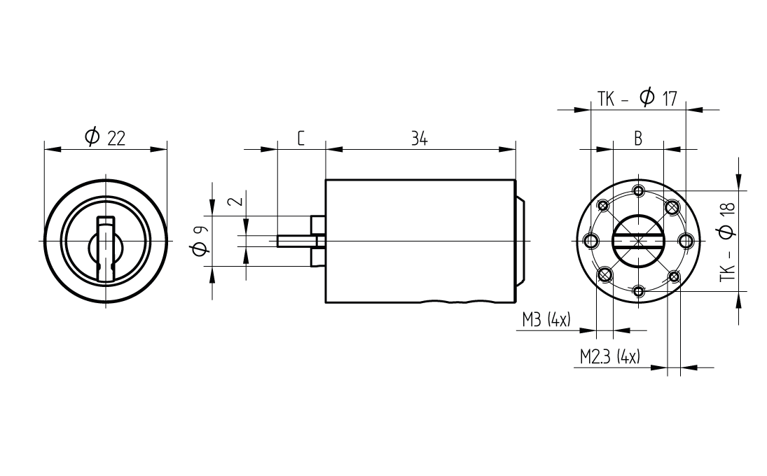 • Triebarm Mass B/C (m: 9mm/8.5mm