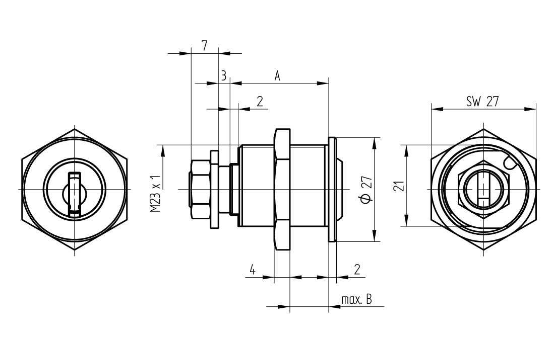 M23, ohne Riegel, 1x90°