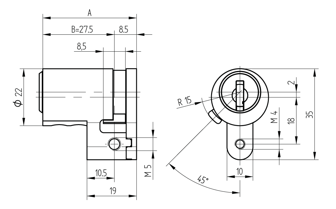 pour 22mm serrures à mortaiser, serrures en applique, serrures spéciales et interrupteurs à clé