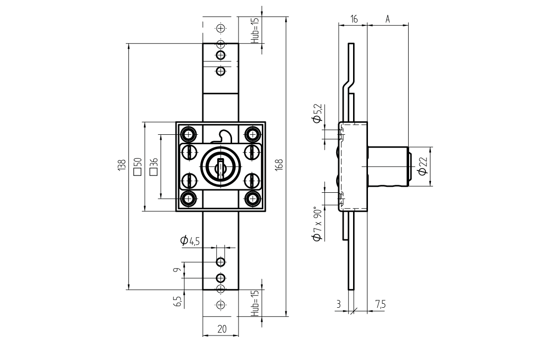 Serrure à tringle à encloisonner M5274.0.23.0.22.D